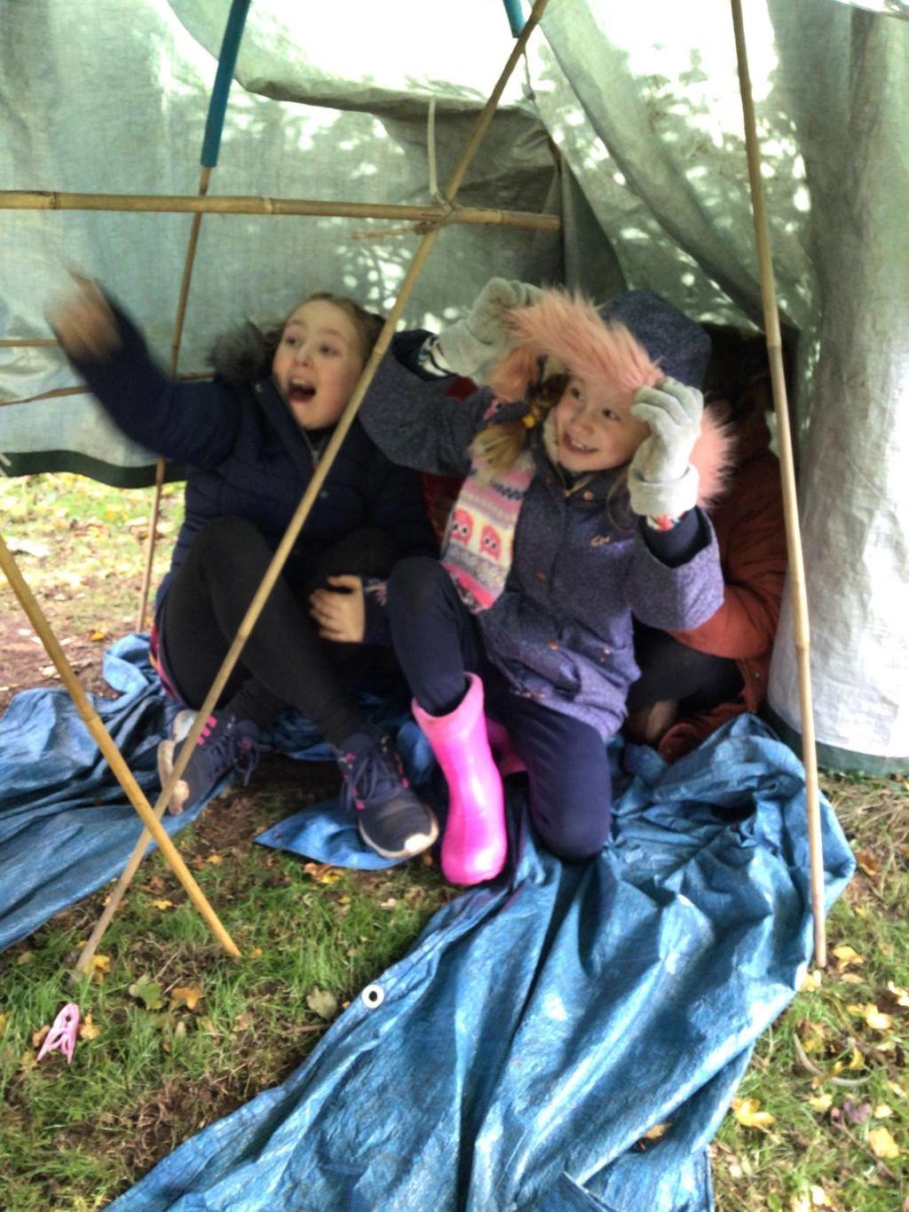 The aim of the activity was to create a den that would withstand both wind and rain.
